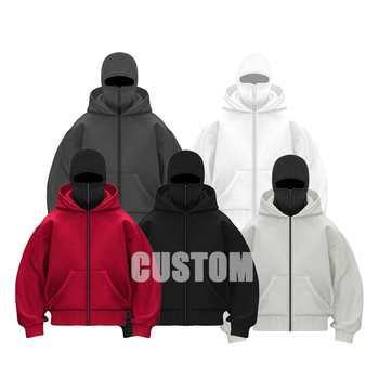 Custom Face Mask Rits Hoodie Effen Zwaar Gewicht Hoodies Rits Capuchon Aanpasbaar Full Face Mask Hoodies Voor Heren