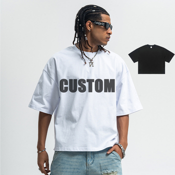 Yüksek kaliteli % 100% pamuk ağır lüks Tshirt özel baskı logosu boy erkek tişört boş kutu Fit T Shirt